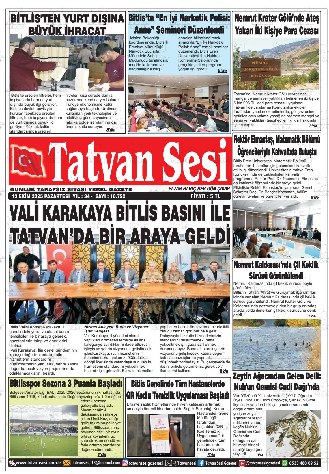 Bİtlİs Yerel Gazeteleri 28 Şubat 2026, Cumartesi Günü Manşeti